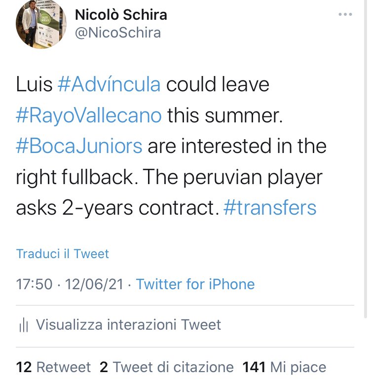 It seems that the end of what today seems like a novel is very close. He was supposed to leave the Club following their relegation in. This Monday the Argentine journalist César Luis Merlo announced that there is already a final agreement so that Luis Advíncula leave Rayo Vallecano and become the newest addition to Boca Juniors where the Peruvian Carlos Zambrano is already.